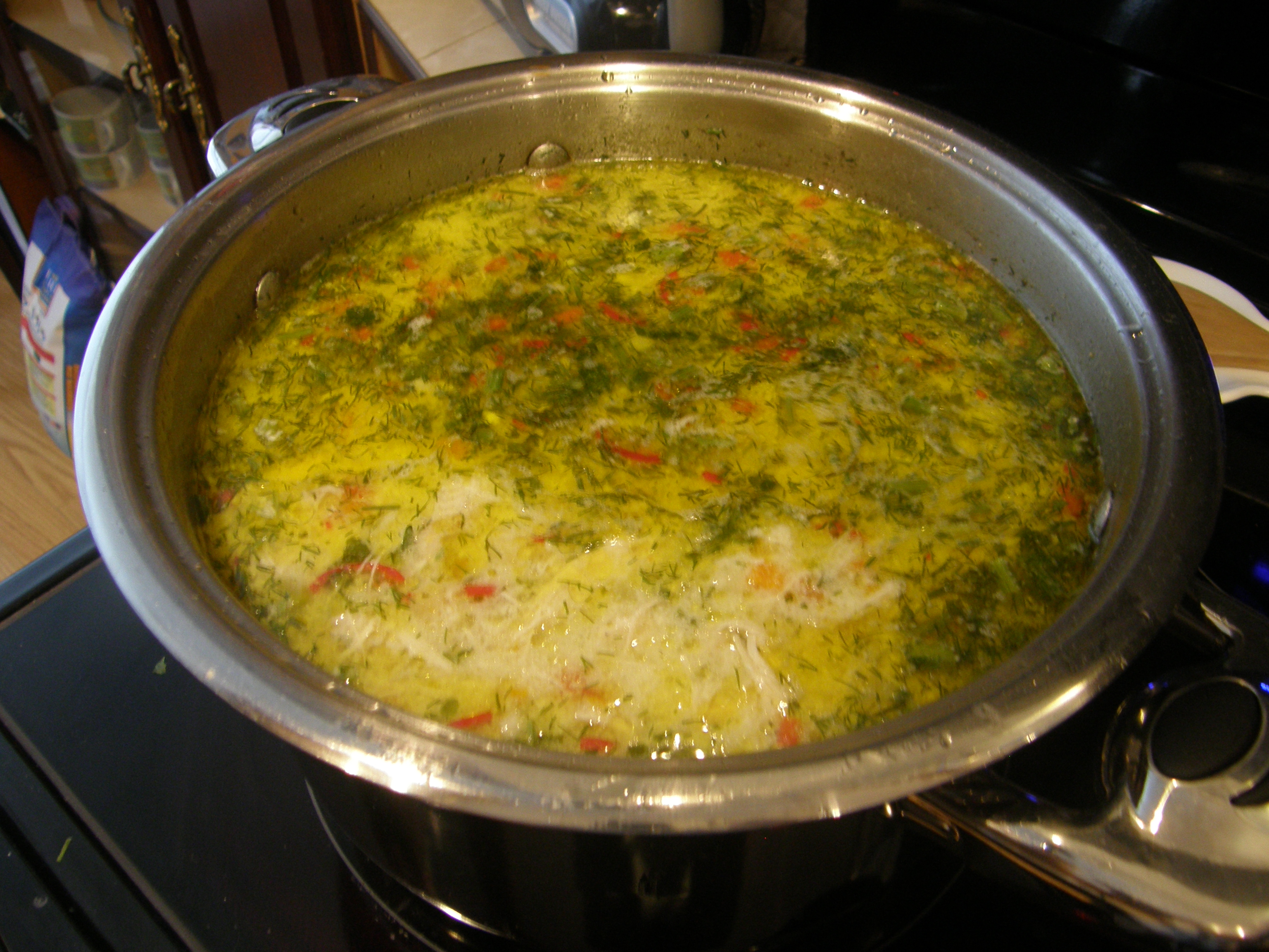- Mix the flour with cream and 3 eggs. Blend well. Dilute the mixture with a little broth and pour it into the pot.