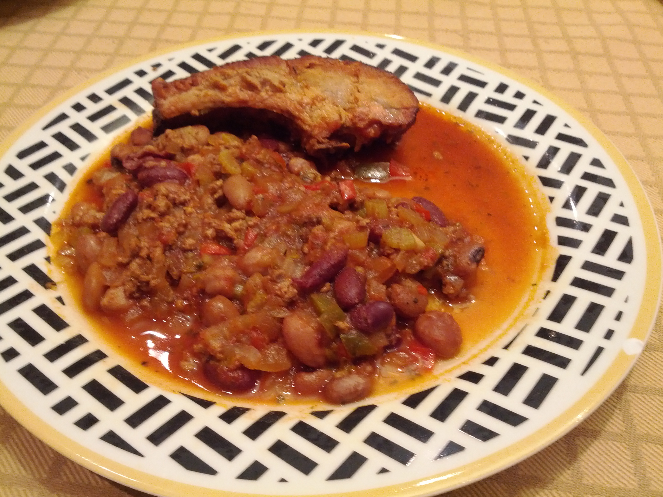 After a boring and long journey to find the best chili and after I tried quite a few recipes, I finally settled to the one below. Just for fun, I’ve added some home made smoked ribs.